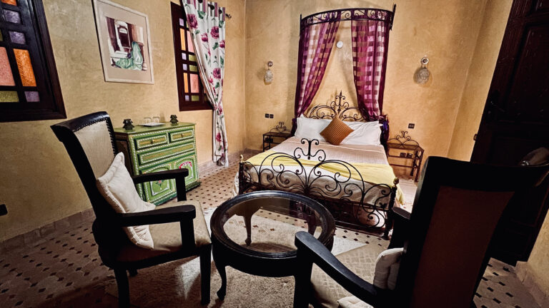 Le Riad dispose d’une suite junior et 7 chambres réparties sur 2 étages. Vous trouverez dans chaque chambre toute la richesse de l’artisanat marocain et chacune inclut également un lit à deux places et une salle de bains avec la baignoire ou la douche.